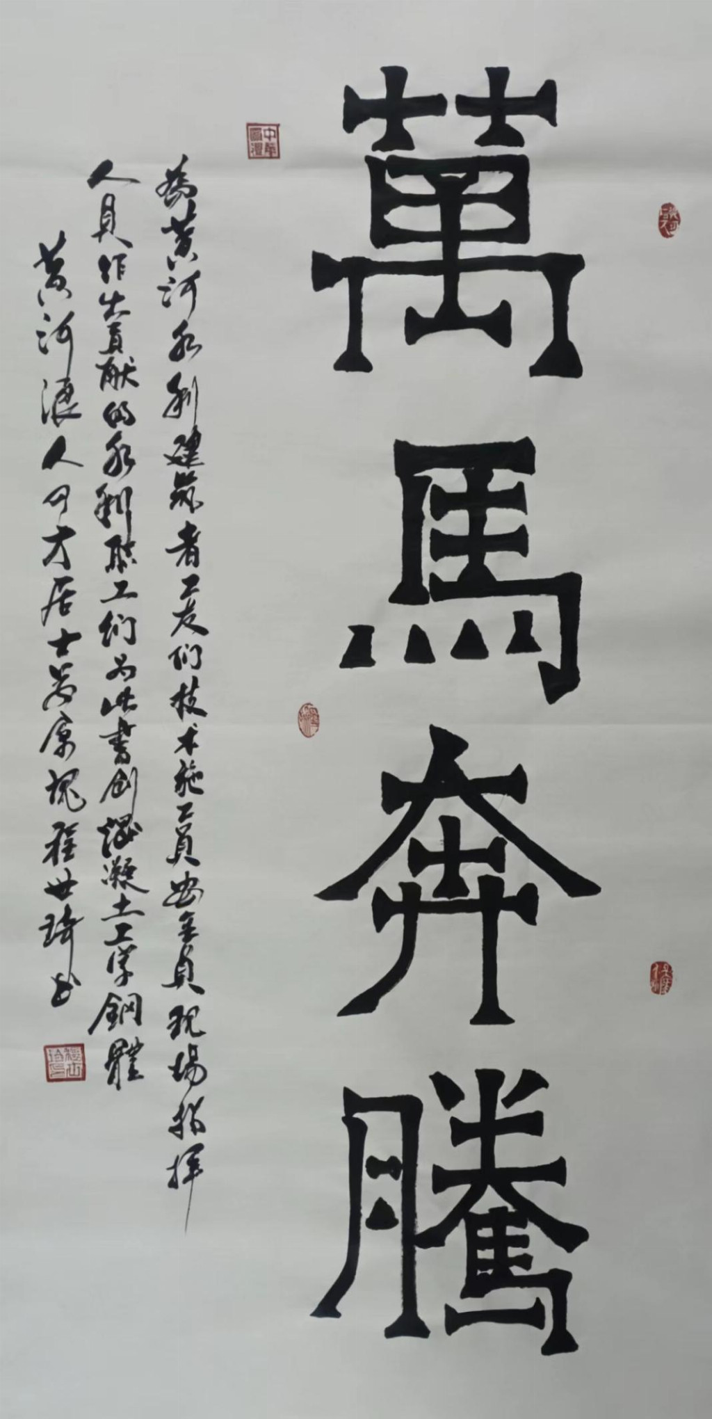 观其楷书,端庄而不板滞,在严谨的法度中透露出舒朗的气韵,仿佛一位谦谦君子,温润如玉,却内藏铮铮铁骨。其行草作品,则是他性情与才情的集中爆发。下笔如风,纵横捭阖,线条时而如高山坠石,充满力量;时而如行云流水,一气呵成。那飞白处,是速度与激情的留痕;那浓墨处,是沉思与力量的凝聚。在他的作品中,你能感受到一种“动静相生”的哲学意味——静时如山岳凝然,动时如江海奔流。这已不仅仅是技术的展现,更是生命状态与精神气象的笔墨外化。