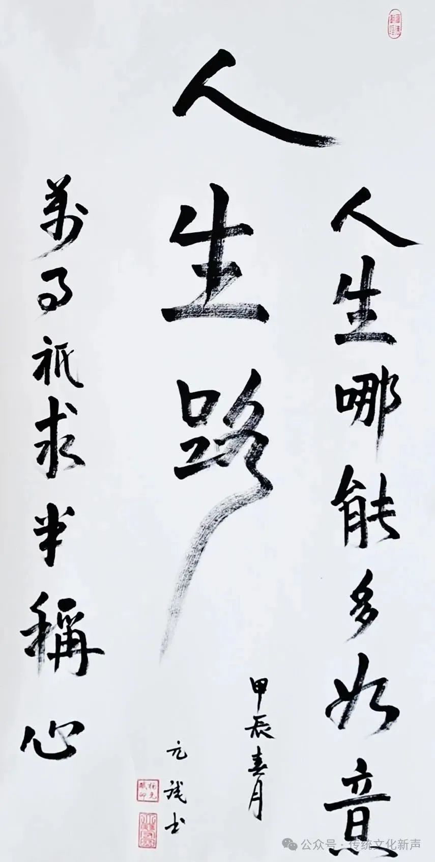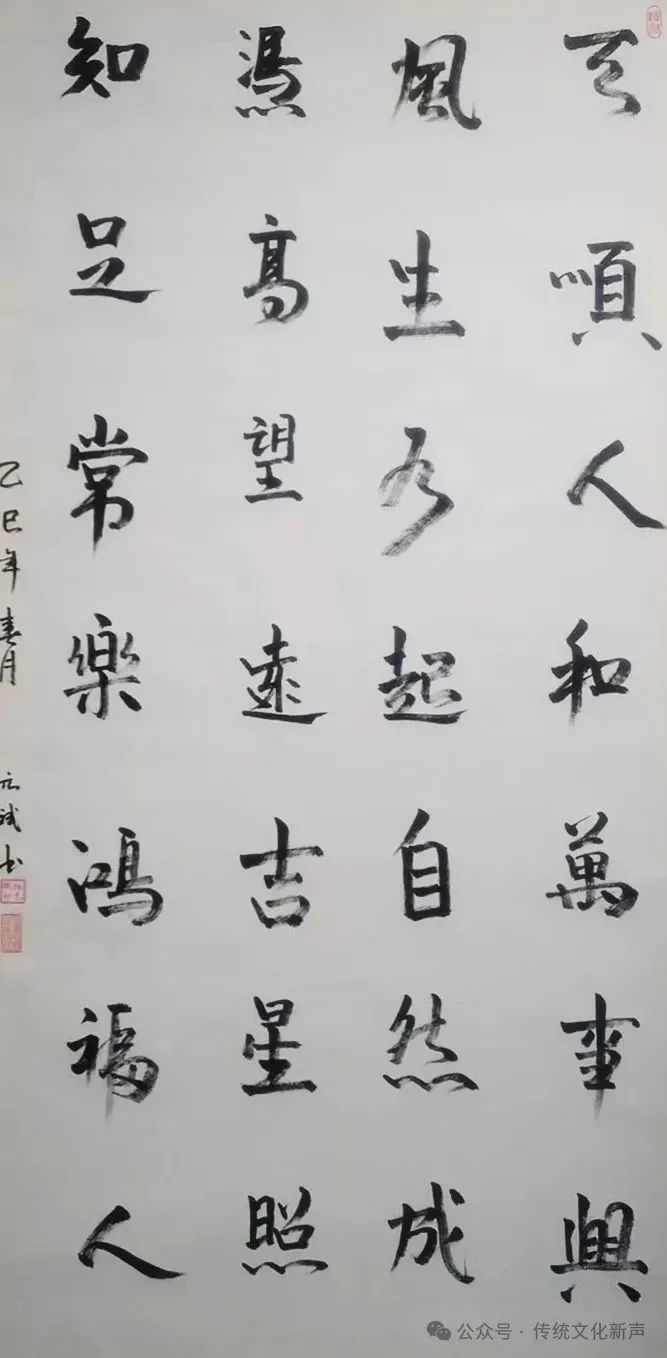 杨元斌以深厚功底筑基,于传统笔墨中见真章,又以灵动思维出新,不趋时、不浮躁,将对生活的洞察与对文化的理解悉数落于纸上。作品筋肉饱满、气象正大,既有正书之谨严,又有行草之洒脱,以笔墨见精神,以格韵立风骨。